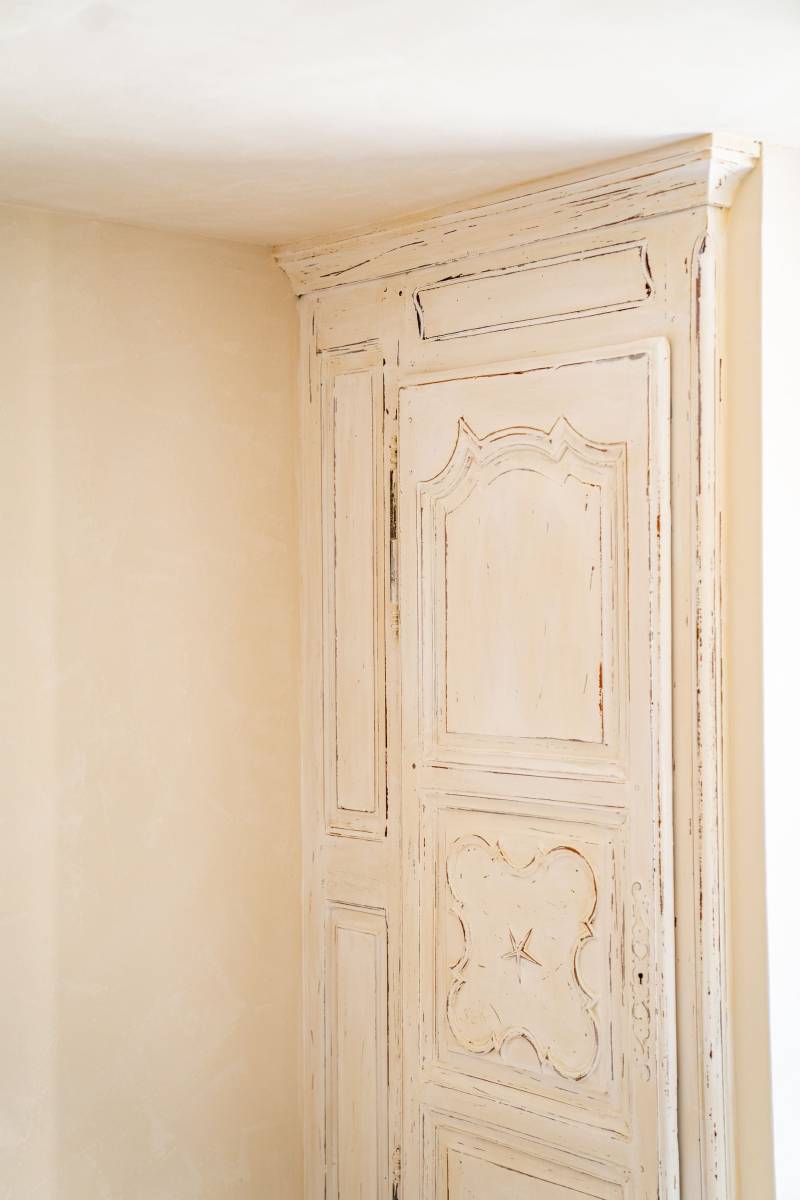 La visite sur chantier d'Eric Valero un décorateur d'intérieur, est un honneur inestimable. Eric voue une passion indéniable pour la chaux et les patines sur les portes. Son artisanat exceptionnel donne vie à des textures et des effets saisissants. Le résultat est un subtil jeu de nuances et d'irrégularités qui se marient harmonieusement avec la beauté environnante du Luberon. Cette immersion dans l'atmosphère de la Provence est une véritable réussite ! Nous ne pouvons qu'admirer le travail accompli par Eric.