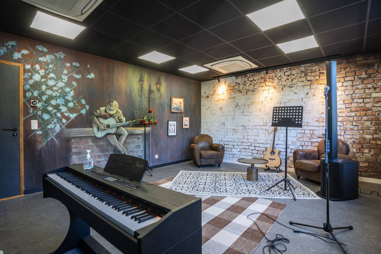 Chaque salle, conçue par l'artiste Marie Biagini, est un hommage à un des tubes mondialement connus de la chanteuse. En plus des magnifiques peintures, une impressionnante fresque en trompe-l'œil, réalisée sur mesure, dépeint un mur défraîchi. Chaque détail est soigneusement travaillé, créant une atmosphère unique et inspirante pour les étudiants en quête de perfection vocale.