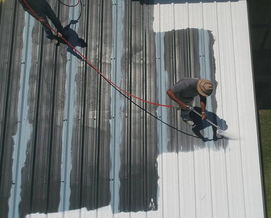 La peinture avec le procédé « cool roof » soit « toit frais » permet de peindre tous type de toitures en blanc afin de renvoyer un maximum les rayonnements solaires. Ces peintures sont travaillées pour avoir une meilleure résistance thermique et une usure sur 20 ans, tout en complétant la solidité de la structure du toit et en renforçant son isolation.